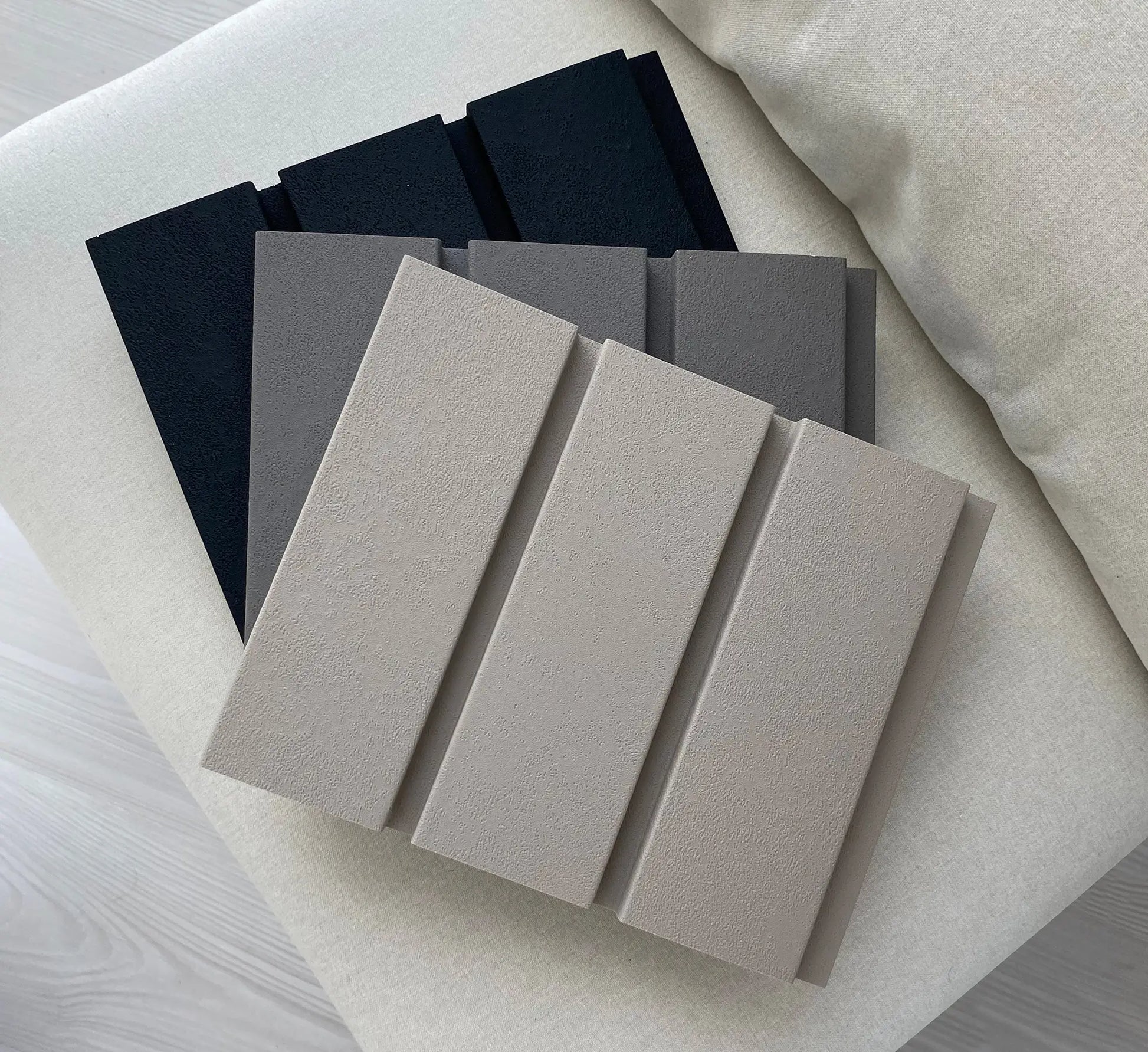 The panels from the Roca collection represent the essence of modern design with a refined, industrial accent. They stand out with wide slats featuring a concrete-like texture, giving interiors a raw yet cozy look while drawing attention with their unique surface. The collection is available in three timeless colors: Onyx Black, Stormy Grey, and Moonlight Grey. Roca slats are an excellent choice for spacious, modern interiors or commercial spaces, where their raw, concrete structure adds elegance and character. Their versatility makes them a perfect choice for industrial, loft, and minimalist arrangements.